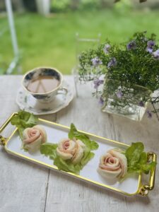 今回は、ハムを挟んだサンドウィッチにバラの形を作って、朝ごはんを少し工夫してみました。