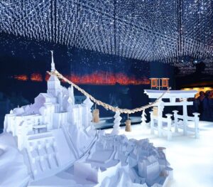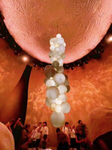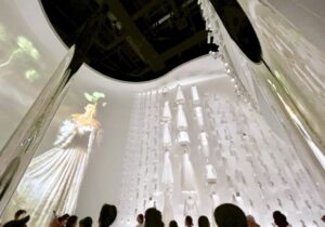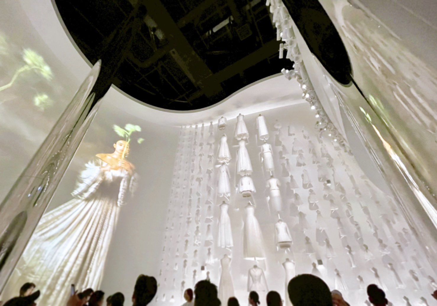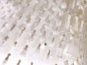 壁一面に白いドレスが飾られていて大迫力