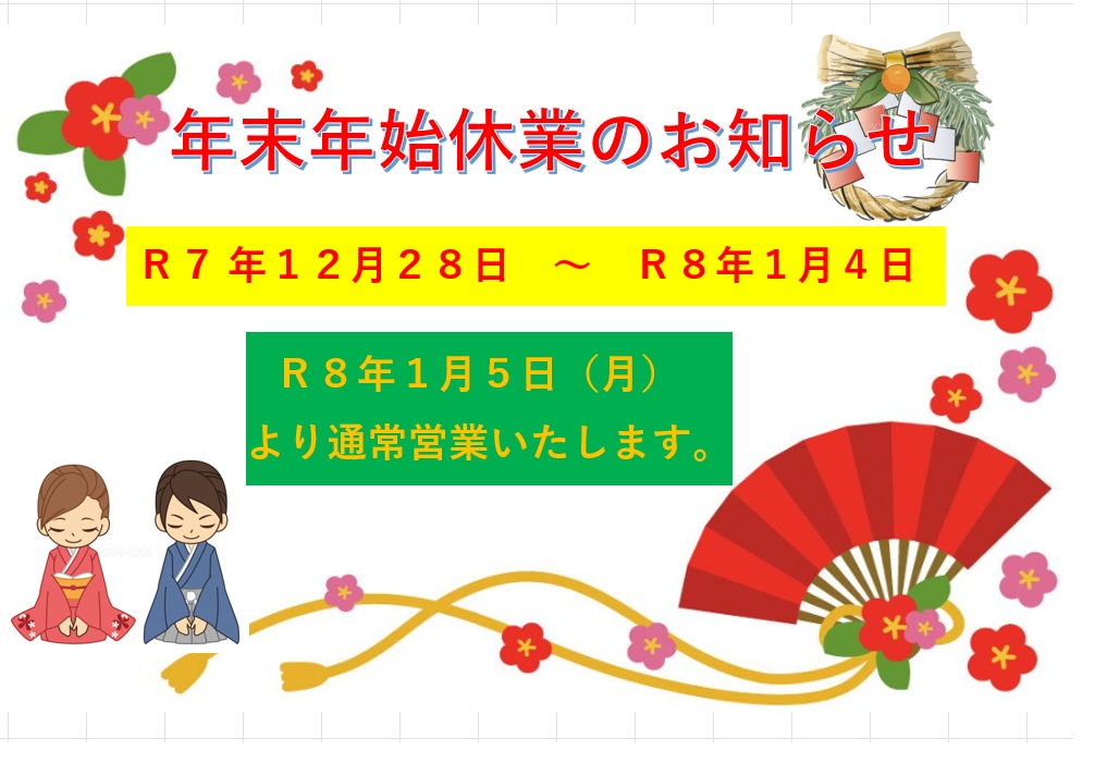 勝手ながら、下記の期間を年末年始休業とさせていただきます。
