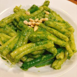 食べた瞬間、口いっぱいにバジルとにんにく、オリーブオイルの香りが広がって