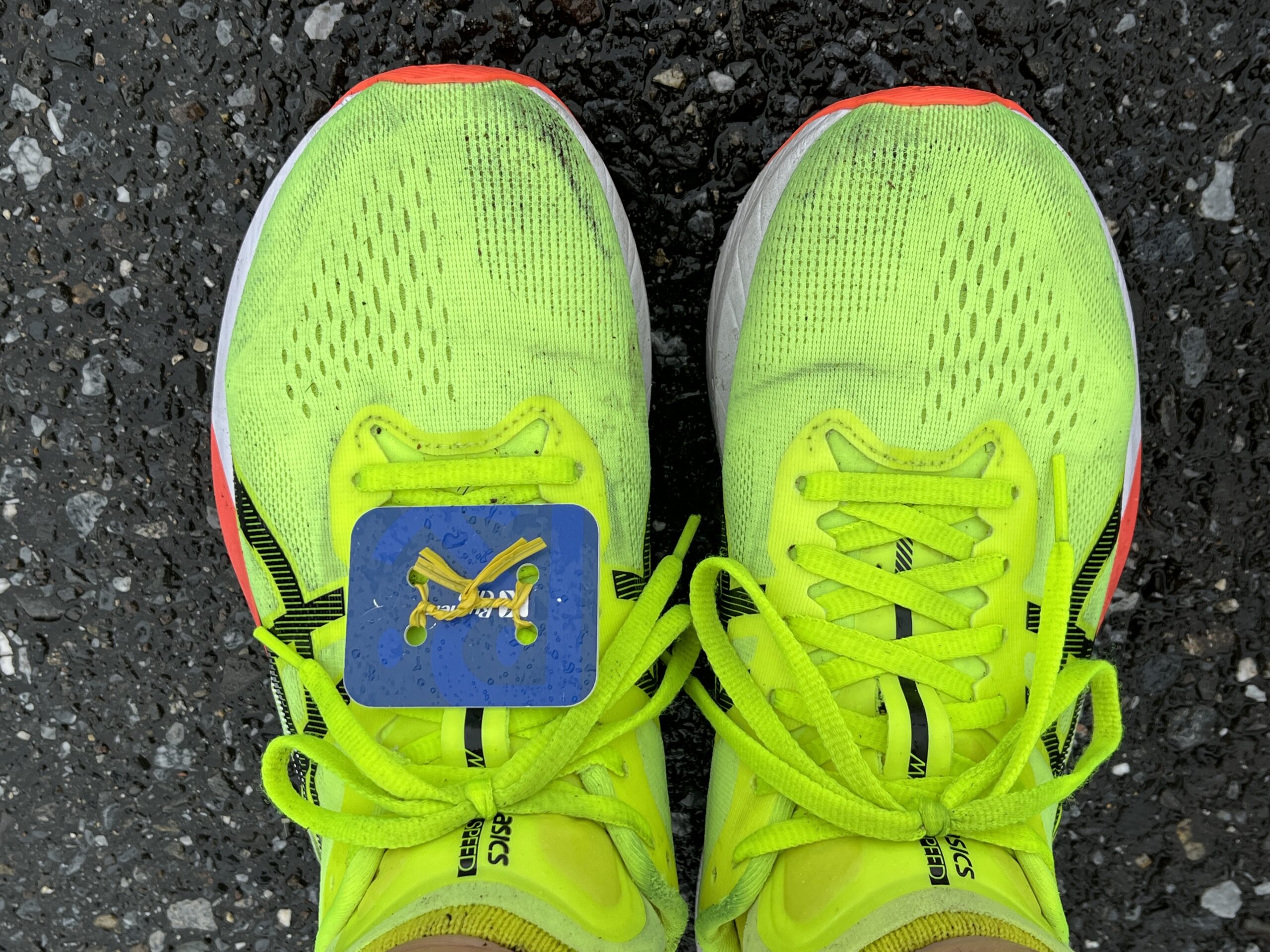 (シューズに付いている青いプレートは