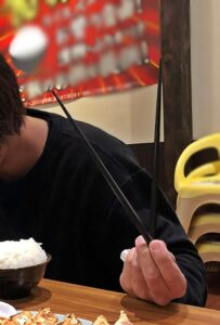 もし、あなたの隣で誰かが不自然な角度で箸を動かしていたら、